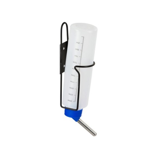 Adăpătoare pentru iepuri, cu suport metalic , potrivită pentru toate cuștile de iepuri , cu scală de umplere imprimată , cu două bile de siguranță, volum 500 ml.