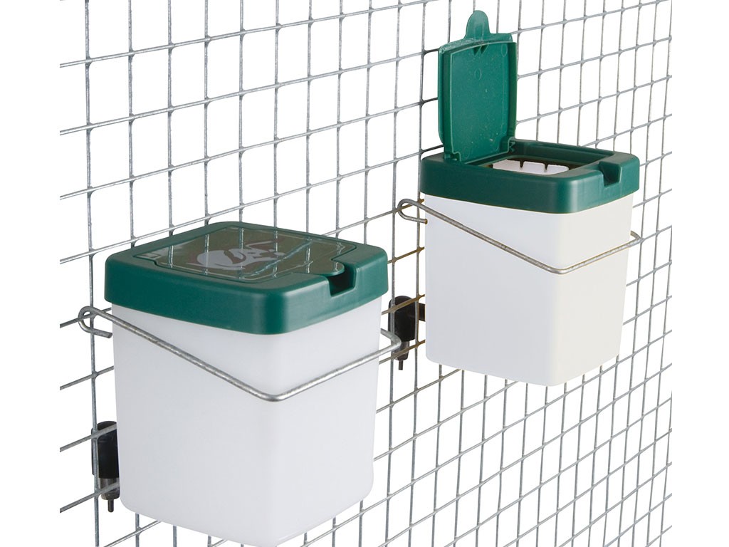 Adăpătorul are un rezervor de 500 ml și un suport din plasă . Potrivit pentru păsări de curte și iepuri. Dimensiuni: 9 x 8,1 x 10,6 cm.