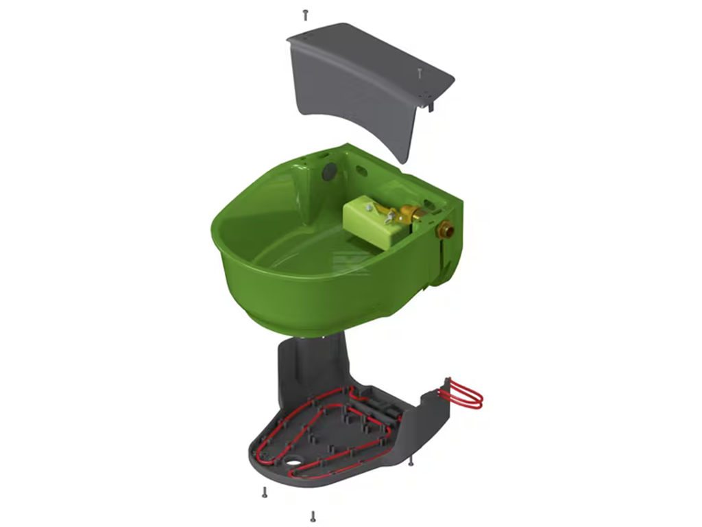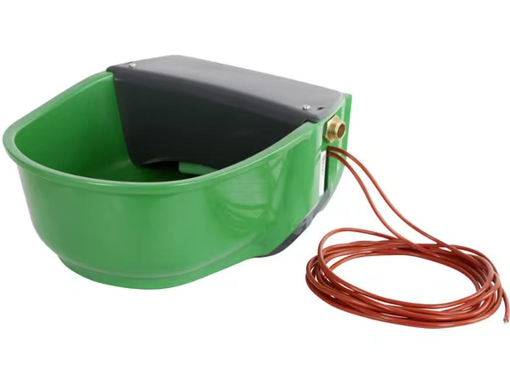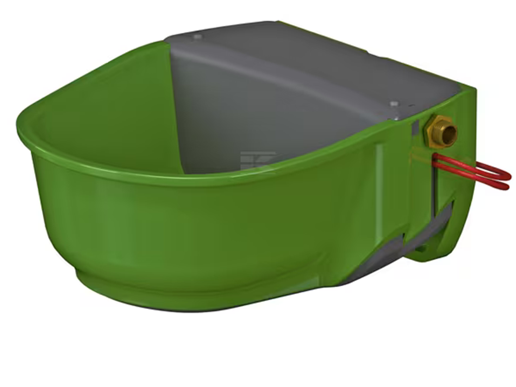 Adăpătoare încălzită , cu cablu de încălzire , pentru cai, oi și bovine, fabricată din plastic de înaltă calitate și durabil , termostat integrat, rezistentă la îngheț până la -15°C, pentru montare pe perete și pe țeavă, volum 5 litri, dimensiuni 29,5x34x16,1 cm.
