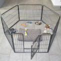 Țarc metalic de înaltă calitate pentru câini și alte animale . Are o gamă largă de utilizări atât în interior, cât și în exterior. Poate fi modelat după dorință. Dacă achiziționați pachetul de mai multe ori, puteți crea un țarc foarte mare. Elementele sunt pur și simplu conectate între ele cu o tijă de sus, prin îmbinări. În zona exterioară, aceste tije pot fi, de asemenea, înfipte în pământ, iar țarcul poate fi ancorat și fixat în pământ.