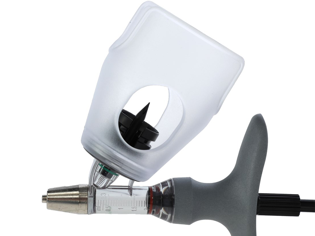 Aparat de injectare pentru vaccinare, cu atașament pentru flacon, dozare reglabilă și precisă , ac metalic , capac robust din plastic, raport excelent preț/performanță , dozare 0,5 - 5 ml.