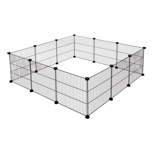 Țarc de joacă pentru animale mici, pentru cobai, iepuri și altele, construcție modulară, metal, vopsit în câmp electrostatic, 12 panouri tip grilă, 24 piese de conectare, dimensiune panou 35x35cm.