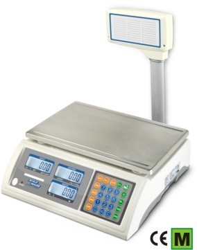 ASGP30M - Cântar de tejghea pentru comerț cu amănuntul, gamă dublă, cu calculare a prețului, 15 kg,
