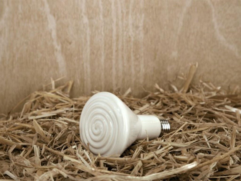 Lampă de încălzire cu infraroșu cu suprafață ceramică, pentru încălzirea păsărilor de curte, purceilor și cățeilor, nu emite lumină vizibilă, emite radiații termice infraroșii, putere 150W , filet E27.