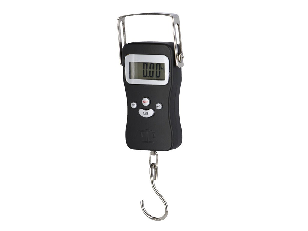 Cântar digital suspendat , până la 50 de kilograme, contor extensibil, LCD iluminat din spate, afișaj cu 4 cifre, afișaj temperatură ( °C, °F ), indicator supraîncărcare și baterie descărcată , cu date - HOLD, tară, funcție de oprire automată.