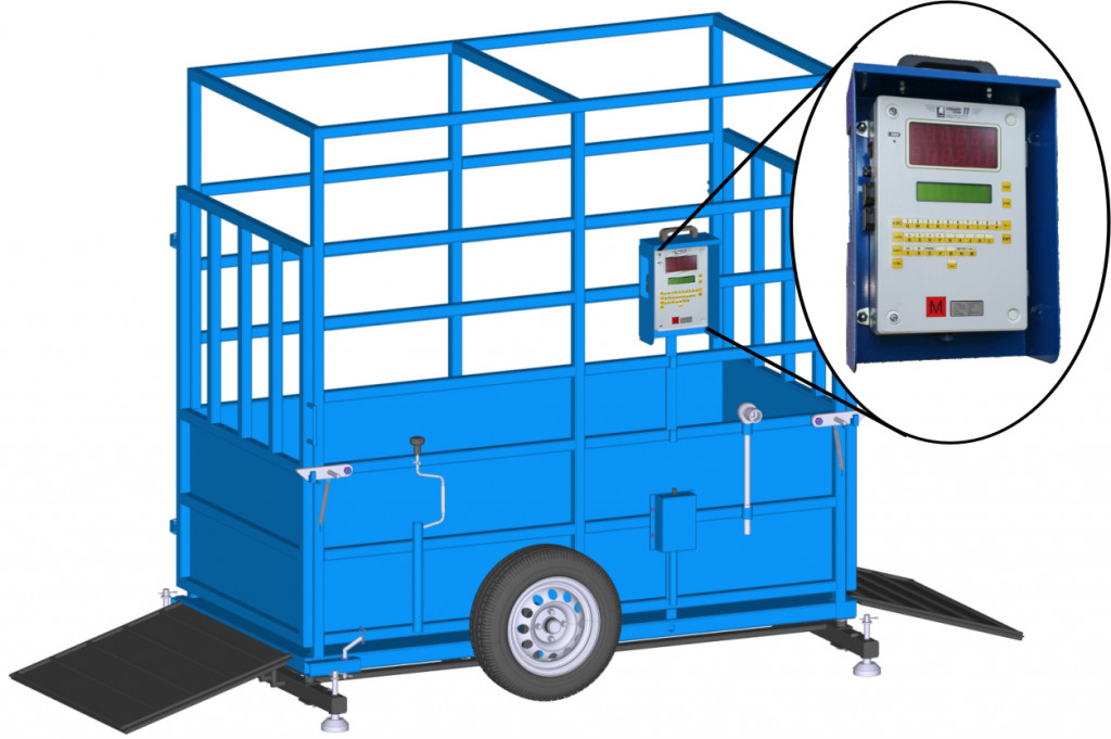 Cântar mobil pentru animale DVM-O-F11D 2000 kg, cu „sticlă”
