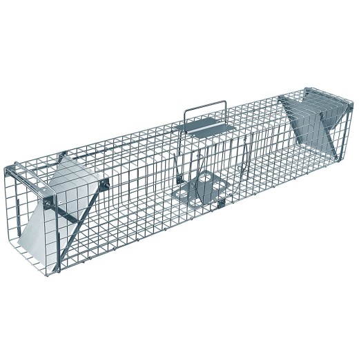 Capcană galvanizată de dimensiuni medii, de înaltă calitate , cu protecție împotriva coroziunii, cu două intrări pentru momeala plasată și sistem de închidere tip punte, cu o construcție foarte solidă , grosimea sârmei de 1,8 mm.