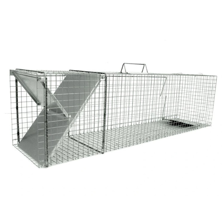 O capcană mare, durabilă, anticorozivă, cu o singură intrare și mecanism de închidere sigur. Această capcană robustă are un fir de 1,8 mm și o închidere tip „punte” care prinde eficient vânatul în interior.