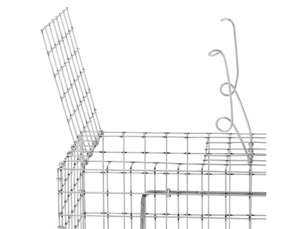 Capcană galvanizată de dimensiuni medii, de înaltă calitate , cu protecție împotriva coroziunii, cu o singură intrare pentru momeala plasată și cu sistem de închidere tip punte, cu o construcție foarte solidă , grosimea sârmei de 1,8 mm.