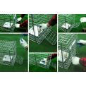 Capcană galvanizată de înaltă calitate , cu protecție împotriva coroziunii, cu o singură intrare pentru momeala plasată și cu sistem de închidere cu portiță, construcție extra rezistentă, grosimea sârmei de 3,0 mm .