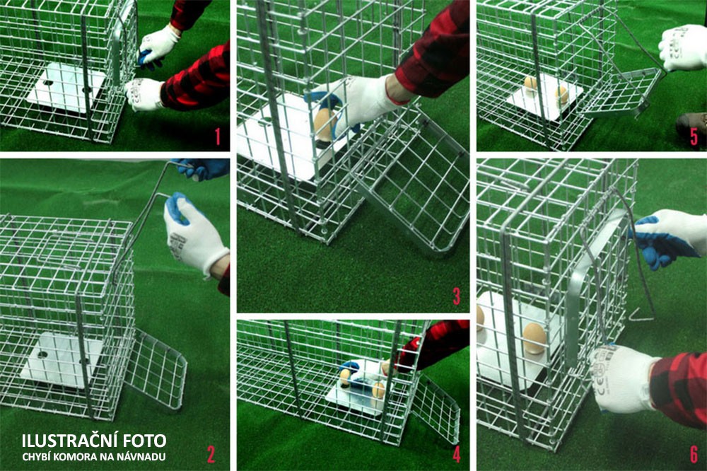 Capcană galvanizată de înaltă calitate cu cameră pentru momeală și protecție împotriva coroziunii, cu o singură intrare pentru momeala plasată și cu sistem de închidere cu poartă, cu construcție extra rezistentă, grosimea sârmei de 3,0 mm .