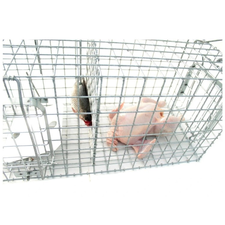 Această capcană galvanizată de calitate superioară este echipată cu o cameră pentru momeală și este protejată împotriva coroziunii. Cu o singură intrare pentru momeală și un mecanism solid de blocare a porții, această capcană este ideală pentru o capcană fiabilă.Construcția din sârmă de 3,3 mm asigură durabilitate și longevitate .