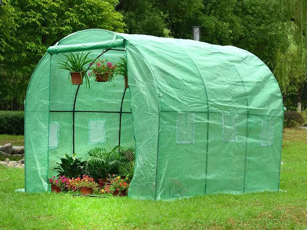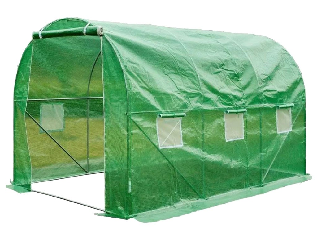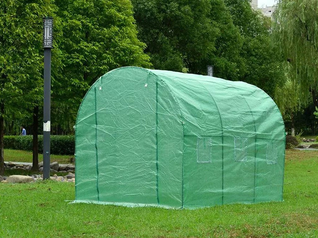 Seră din folie pentru creșterea plantelor, folie verde cu o permeabilitate de 140g/m2, fibre de sticlă/polietilenă/metal, tije de construcție cu diametrul de 25mm, 6 ferestre de ventilație pe laterale, suprafață seră din folie de 6 m2, dimensiuni 300x200x200 cm.