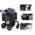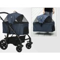 Această combinație dintre un cărucior și o geantă portabilă este o soluție excelentă nu doar pentru plimbări, ci și pentru călătoriile cu un câine. Geanta va servi drept loc minunat de odihnă pentru câinele dvs. , de exemplu într-o cameră de hotel. În versiunea cu cărucior, puteți face plimbări prin oraș, în parc și pe teren accidentat, fără a restricționa mișcarea câinelui. Mersul confortabil pe teren accidentat este asigurat de roțile față duble pivotante cu arcuri și roțile spate fixe, care pot fi fixate cu două frâne. În plus, puteți regla înălțimea mânerului căruciorului în funcție de nevoile dvs.