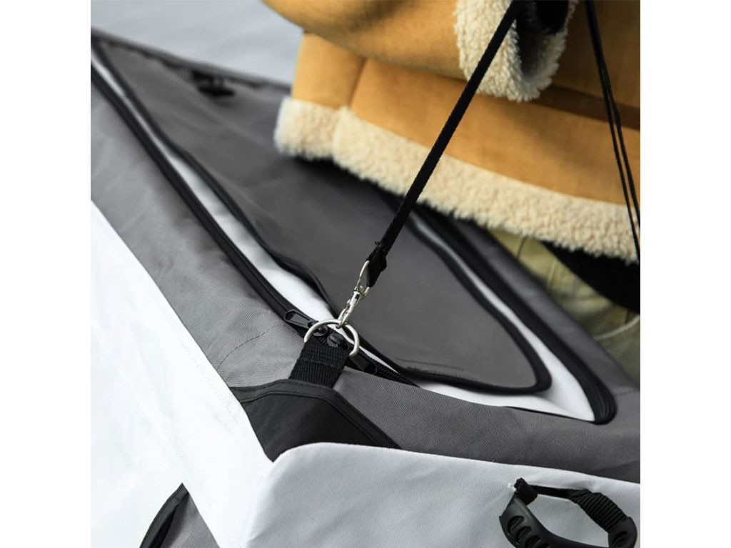Această combinație de cărucior și geantă portabilă este o soluție excelentă nu doar pentru plimbări, ci și pentru călătoriile cu un câine, indiferent de vreme. Geanta va servi drept loc minunat de odihnă pentru câinele dvs., de exemplu într-o cameră de hotel. În versiunea cu cărucior, puteți merge la plimbări prin oraș sau în parc fără a restricționa mișcarea câinelui. O călătorie confortabilă este asigurată de roțile față și spate duble pivotante , care pot fi fixate cu frâne.