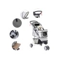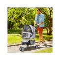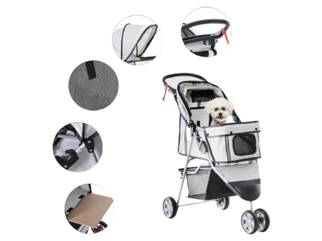Puteți folosi acest cărucior confortabil pentru câini pentru plimbări în oraș sau în parc. O plimbare plăcută este asigurată de roțile față duble pivotante și roțile spate duble fixe, care pot fi fixate cu două frâne.