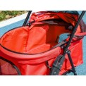 Cu trapă rabatabilă Câinele poate fi ușor blocat în cărucior și, datorită ferestrei mari din plasă din copertină și a ușii din plasă, câinele nu numai că are o vedere bună, dar și o sursă de aer proaspăt. Manipularea câinelui se va face prin Ușile cu fermoar din față și din spate sunt ușor de deschis și puteți apoi atașa câinele la două lese de siguranță din interiorul căruciorului. Căruciorul are, de asemenea, mult spațiu de depozitare pentru echipamentele pentru câini. Buzunarul inferior mare de sub corpul căruciorului este folosit pentru a depozita obiecte mai mari, cum ar fi o sticlă de apă, o lesă, o pătură și alte provizii pentru câini. Buzunarul practic cu fermoar de pe ușa din spate este situat la îndemână pentru obiecte mici, cum ar fi recompense sau documente.