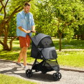 Puteți folosi acest cărucior confortabil pentru câini pentru plimbări în oraș sau în parc, în orice vreme, datorită impermeabilului. O plimbare plăcută este asigurată de roata față dublă pivotantă și roțile spate fixe, care pot fi fixate cu două frâne cu amortizoare.