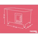 Dimensiunile exterioare ale întregii cuști pentru pisici sunt 57 x 45 x 43 cm. Dimensiunile podelei sunt 50,5 x 33,5 cm. Dimensiunile ușii sunt 15,5 x 21 cm. Grosimea peretelui este de 0,7 cm.