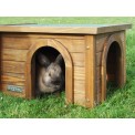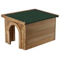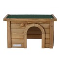 Căsuță pentru iepuri, cobai, hamsteri, chinchilla și gerbili , cu două intrări, acoperiș rezistent cu strat de bitum. Potrivită pentru cușcă sau incintă exterioară, cu strat protector și dimensiuni 45x32x27 cm.