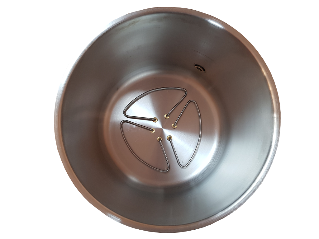 Cazan de gătit la abur pentru păsări de curte , potrivit pentru găini, gâște, rațe, curcani și prepelițe , care va pregăti perfect păsările pentru îndepărtarea tuturor penelor. Acesta este un cazan electric complet din oțel inoxidabil , cu un volum de 95 l , cu un diametru al tamburului de 50 cm , cu o adâncime a tamburului de la serpentina de încălzire până la marginea de 48 cm , cu termostat automat , echipat cu un insert de imersie pentru udarea eficientă a păsărilor de curte și o supapă de scurgere pentru scurgerea ușoară a apei , putere nominală de 4500 W ( 220V, 50Hz) , dimensiunile produsului sunt 61 x 53 x 63 cm .