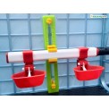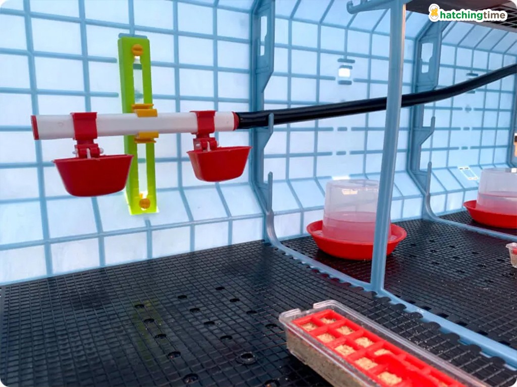 Casa de reproducere este dotată cu două adăpătoare tip pălărie pe fiecare etaj pentru primele zile de viață ale puilor și două adăpătoare tip tetină reglabile pe înălțime , care oferă o modalitate fără probleme și igienică de a uda puii în interiorul cuștii. Adăpătoarele tip tetină includ , de asemenea, boluri suplimentare cu apă , care creează adăpători automate de înaltă calitate și împiedică, de asemenea, puii să le ude. Apa este furnizată adăpătorilor automate dintr-un rezervor de apă transparent , folosind un sistem de furtunuri. Prin urmare, rezervorul oferă o imagine de ansamblu perfectă asupra nivelului actual al apei , capacul său protejează apa de contaminare și asigură, de asemenea , reumplerea ușoară pentru crescători, după cum este necesar.