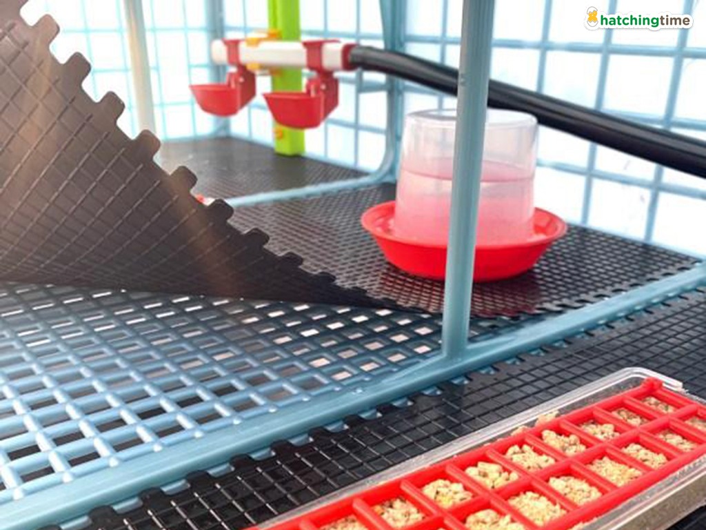 Pachetul include , pe fiecare etaj, trei boluri portabile pentru hrănirea primelor zile de viață a puilor , iar cotețul de păsări este dotat și cu un hrănitor suspendat de mare capacitate , pentru o cantitate de hrană de până la 2 zile pentru fiecare pui. Hrănitoarele sunt fabricate din plastic de înaltă calitate, rezistent la impact și foarte ușor de întreținut . În plus, hrănitoarele sunt echipate cu o grilă specială care împiedică puii să dezgroape hrana, prevenind astfel risipa acesteia. Grila este concepută pentru o mișcare rezonabilă în timpul consumului de hrană.