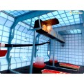 Clădiță de creștere a păsărilor potrivită pentru creșterea a 120 până la 135 de pui , cu tehnologie patentată Comfortplast , dimensiuni 104 x 64 x 119 cm . Este o cușcă cu 2 etaje și 3 compartimente , care sunt echipate cu o bandă de încălzire cu termostat reglabil și o priză pentru bec , hrănitoare cu grilă pentru a preveni risipa de furaje, adăpătoare cu alimentare cu apă dintr-un rezervor de 8 litri .