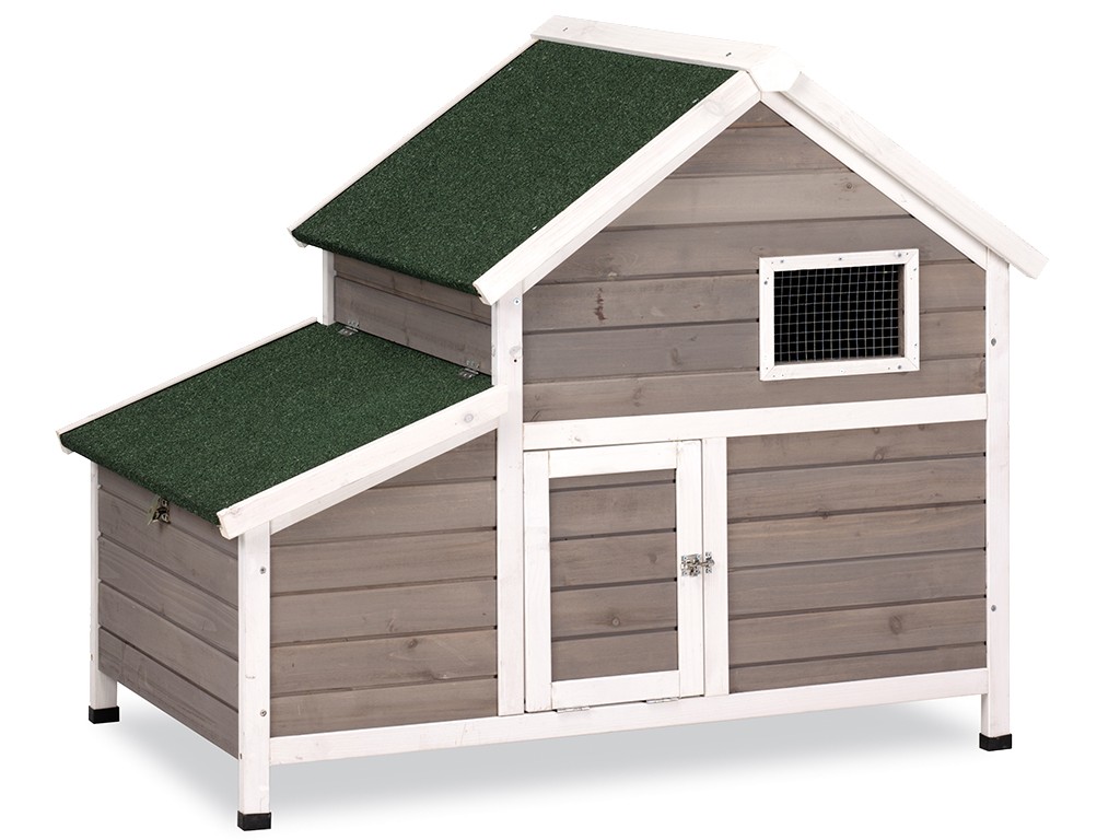 Cotețul de găini este dotat cu stinghii pentru ca găinile să se odihnească noaptea. Cotețul include și două adăposturi exterioare , în care găinile vor avea suficient spațiu și liniște pentru a depune ouă. Luarea ouălor va fi foarte ușoară , deoarece trebuie doar să ridicați acoperișul cuiburilor de ouat pentru a le colecta . În același timp, nu există riscul ca cotețul să aibă scurgeri, deoarece are un acoperiș impermeabil.