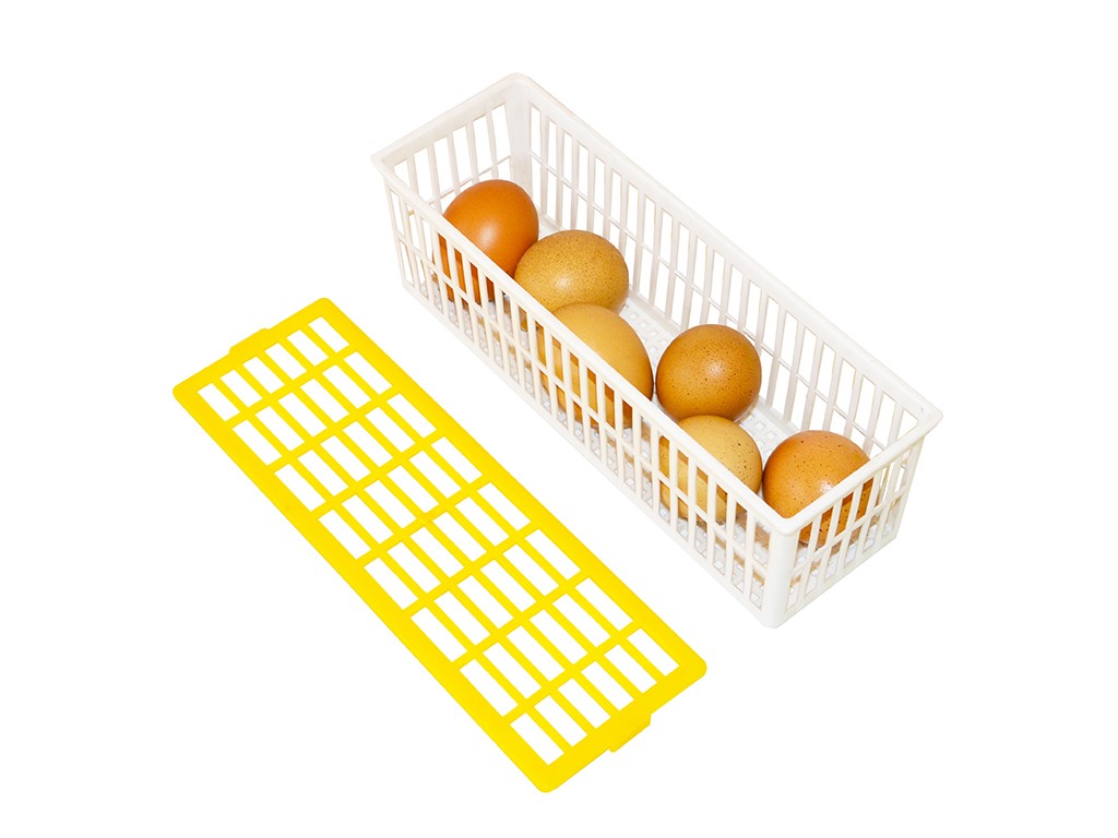 Pentru plasarea ouălor înainte de eclozarea din coajă, potrivit pentru incubatoarele CIMUKA din seria PD, cu o capacitate de 6 ouă de găină, manipulare ușoară prin capacul tip coș , circulație ridicată a aerului - construcție respirabilă, fabricată din plastic lavabil .