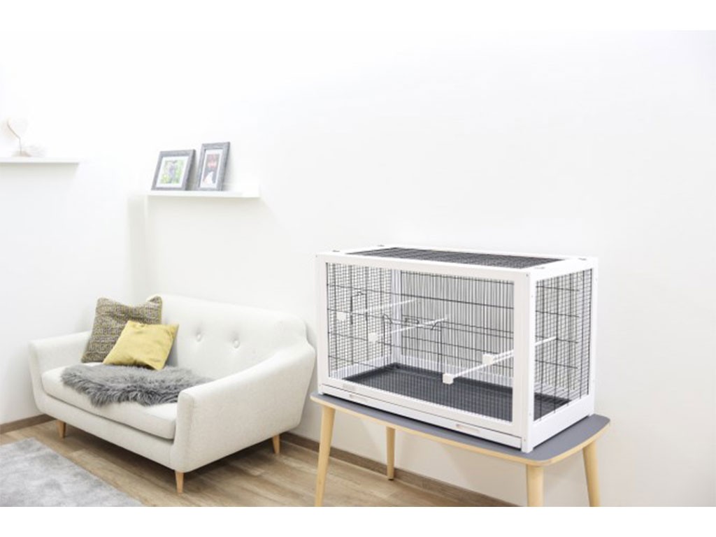 Colivia, cu dimensiunile de 100x50x60 cm, are suficient spațiu pentru un papagal de dimensiuni medii și câteva păsări mai mici. Este fabricată din lemn de molid durabil, care este protejat suplimentar de o vopsea albă atractivă și poate decora apartamentul sau casa dumneavoastră.