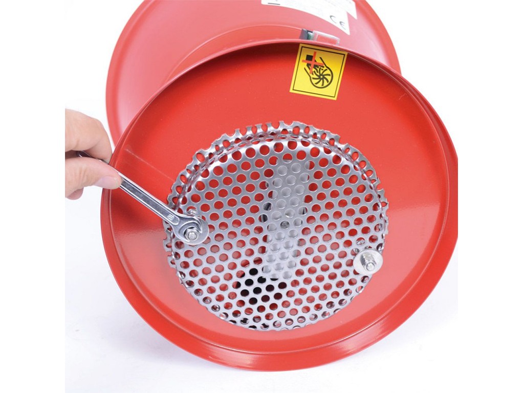 Odată ce materia primă a fost mărunțită conform sitei selectate la grosimea necesară , aceasta cade într -un butoi de depozitare, care are un volum de 20 l . După terminarea mărunțirii, butoiul poate fi închis cu un capac cu încuietoare de siguranță , iar materia primă poate fi depozitată în acest butoi atât timp cât este necesar.