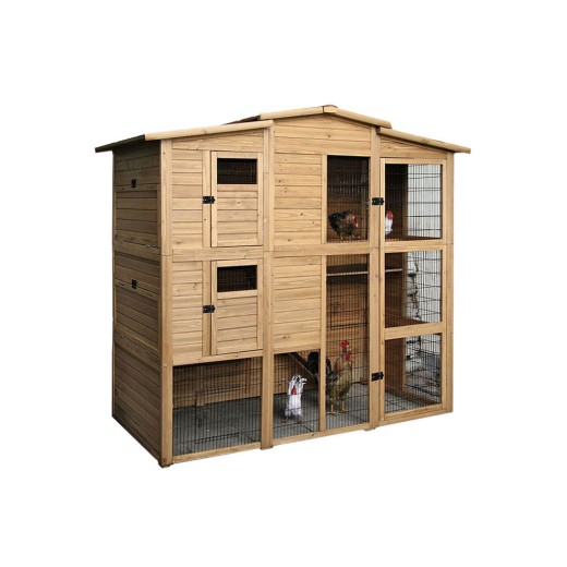Coteț de găini cu două etaje pentru 6-10 găini , cu dimensiunile de 222x115x200cm. Acesta este un coteț de găini perfect, dotat cu două stinghii , șase cuiburi de ouat și șase intrări în coteț și țarc pentru o curățare ușoară. Cotețul de găini este fabricat din lemn lăcuit , asigurând astfel o structură stabilă.