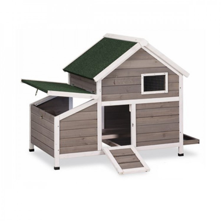 Coteț spațios pentru găini, într-o culoare luxoasă, fabricat din lemn de brad , pentru 4 găini , în funcție de mărimea lor. Construcția durabilă din lemn masiv garantează un confort deosebit pentru găinile dumneavoastră din coteț. Cotețul este foarte spațios. Acoperișul este prevăzut cu șindrilă de înaltă calitate. Asamblarea este foarte simplă, pe baza instrucțiunilor ilustrate, și oricine îl poate manevra.