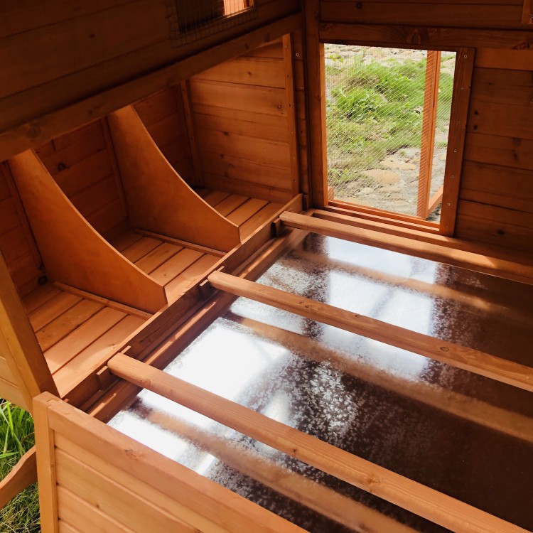 Cotețul pentru găini este echipat cu un sertar pentru golirea ușoară a excrementelor.