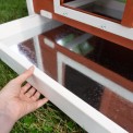 Cotețul pentru găini este echipat cu un sertar pentru golirea ușoară a excrementelor.