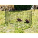 Un țarc în formă de cușcă este alegerea perfectă pentru oricine crește iepuri, cobai, păsări de curte sau are căței mici. În acest fel, vă puteți lăsa animalele de companie pe iarbă și la aer curat, fără să vă faceți griji că vor fugi . Puteți asambla țarcul în cel mai scurt timp și îl puteți dezasambla din nou, dacă este necesar. Puteți muta acest țarc mobil dintr-un loc în altul, după cum aveți nevoie. Puteți intra cu ușurință în țarc prin ușa care se deschide , care are o înălțime de 25 cm , astfel încât animalele mici să nu poată scăpa atunci când ușa este deschisă.