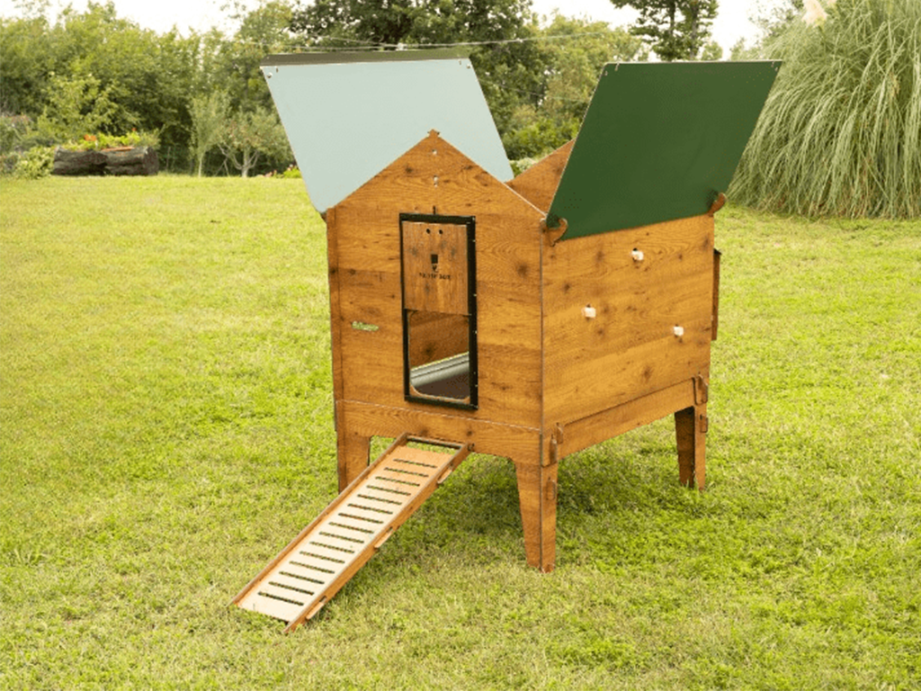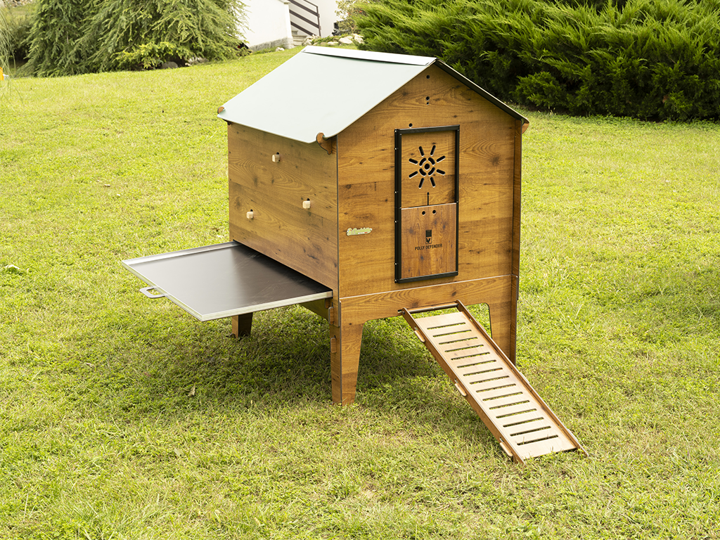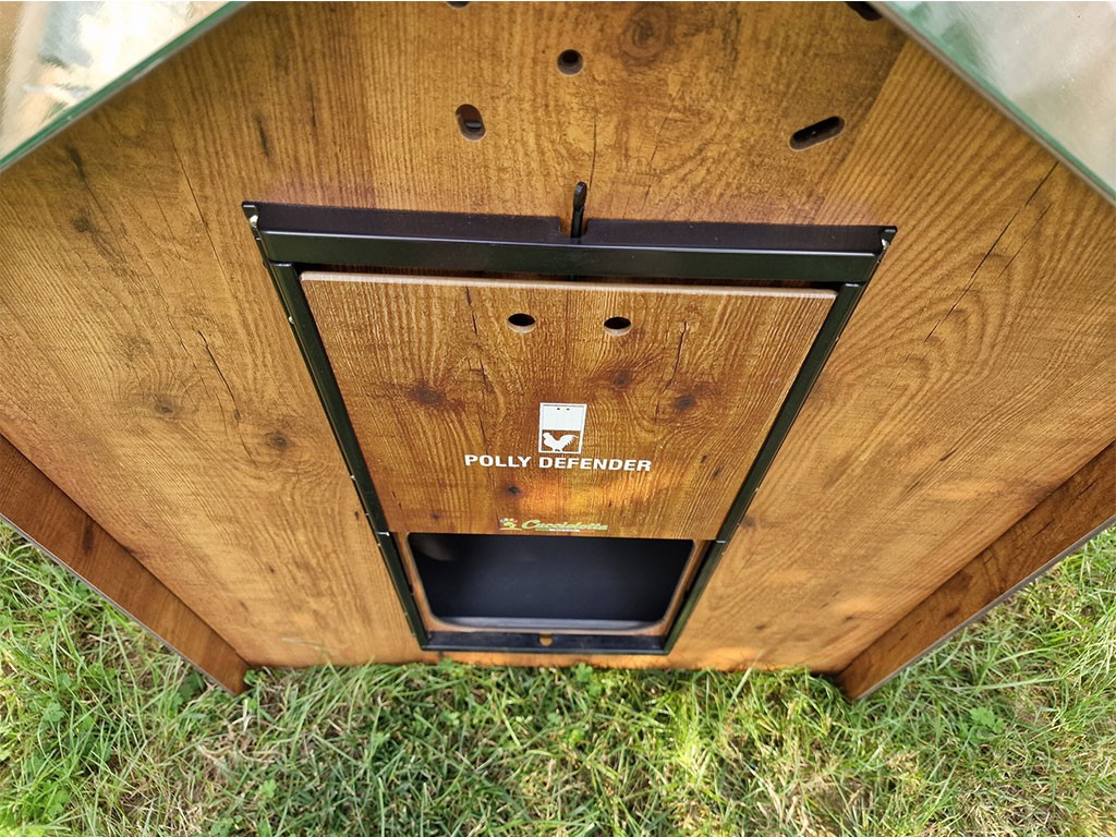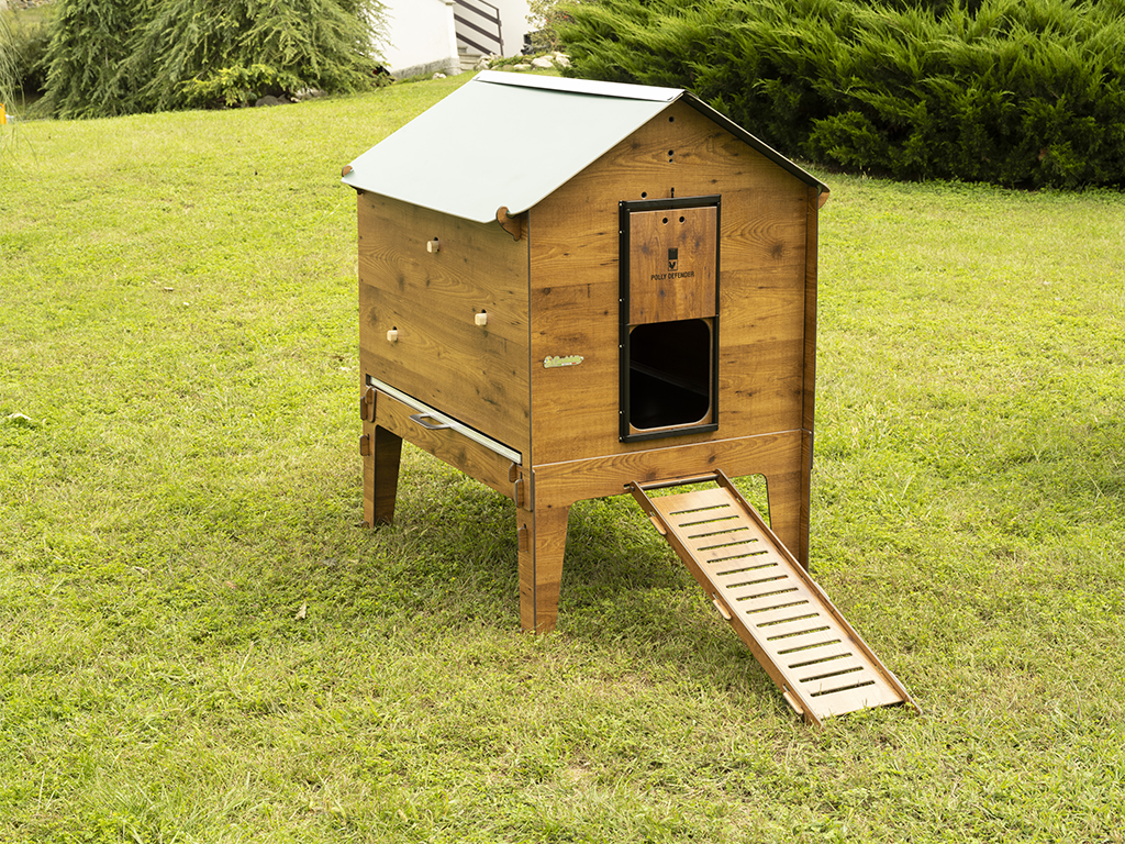 Cotețul pentru găini este dotat cu trei stinghii pentru ca găinile să se odihnească noaptea. Cotețul include și două adăposturi exterioare , în care găinile vor avea suficient spațiu și liniște pentru a depune ouă. Luarea ouălor va fi foarte ușoară , deoarece trebuie doar să ridicați acoperișul cuiburilor de ouat pentru a le colecta . Pachetul include o ușă de siguranță Polly Defender , la care puteți conecta cu ușurință un sistem de deschidere automată a cotețului pentru găini, dacă sunteți interesat. Deschiderea și închiderea automată a cotețului pentru găini nu este inclusă în pachet!