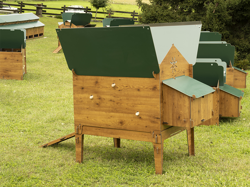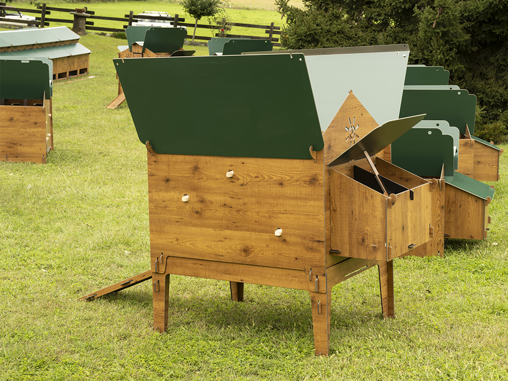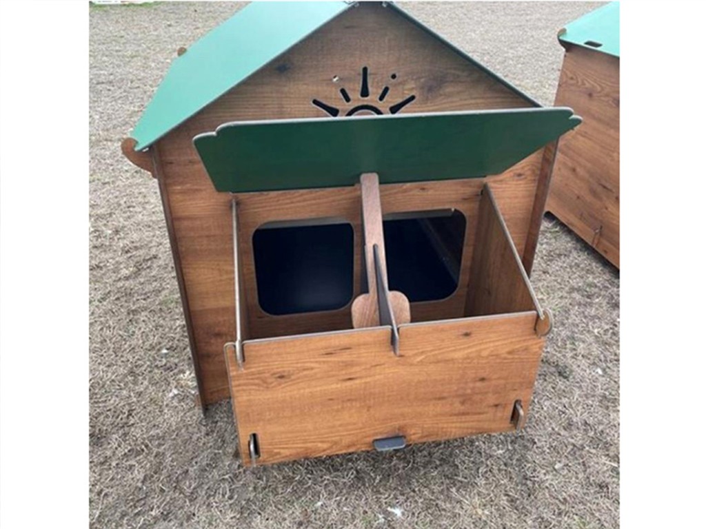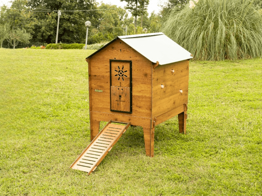 Coteț pentru găini pentru 9-12 găini , cu dimensiunile de 105x155x107 cm. Acesta este un coteț foarte confortabil, dotat cu trei stinghii, două cuiburi exterioare pentru ouat și o tavă retractabilă pentru bălegar, pentru o curățare ușoară. Cotețul este fabricat din laminat HPL de înaltă calitate, care este foarte rezistent, neted, ușor de întreținut și la atacurile diverșilor paraziți , în special ale bondarilor .