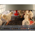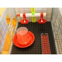 Etaj suplimentar al cotețului de păsări, potrivit pentru creșterea a 40 până la 45 de pui , cu tehnologie patentată Comfortplast , dimensiuni 104 x 60 x 35 cm . Este o cușcă fără ramă cu un singur nivel, cu 3 compartimente , care sunt echipate cu o bandă de încălzire cu termostat reglabil și o priză pentru bec , hrănitoare cu grătar pentru a preveni risipa de hrană, adăpătoare cu alimentare cu apă fără rezervor .