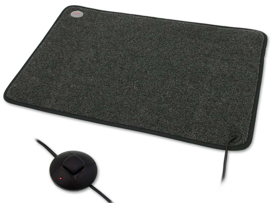 Covoraș încălzitor cu infraroșu pentru picioare , dimensiuni 39x59x0,7 cm , fabricat din fleece rezistent , cu parte inferioară antiderapantă, consum redus de energie - 230 V / 85 W, eficiență ridicată de încălzire până la 50-60°C , cu limitator de temperatură de siguranță, întrerupător pornit/oprit cu indicator LED , lungime cablu de alimentare 1,7 m , clasă de protecție la apă IP X4.