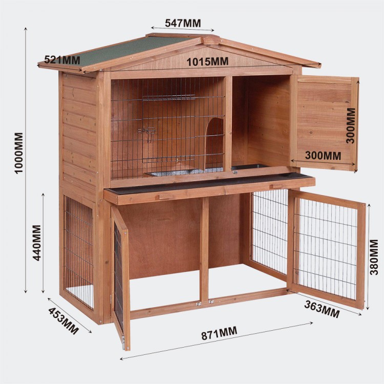 Cușcă de iepuri din lemn HONGKONG, 870x450x1000 mm