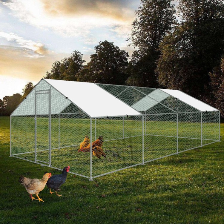 Un țarc împrejmuit și o cușcă exterioară cu dimensiunile de 8x3x2 m vă vor proteja păsările de curte. Pachetul include și o prelată, datorită căreia putem crea o umbră plăcută într-o parte a țarcului împrejmuit. Un coteț pentru găini poate fi plasat și direct în cușcă. Asamblarea este foarte simplă. Aceasta este o versiune cu plasă acoperită cu plastic.