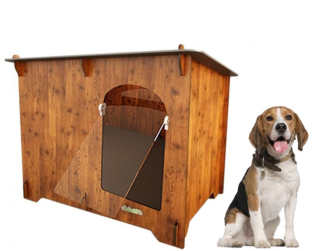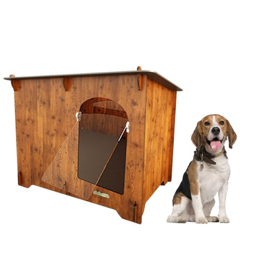 - Intrarea în cușca câinelui este protejată de o ușă Lexan impermeabilă , care va proteja animalul de companie de vânt și frig. Ușa este prinsă de intrare în două locuri, iar câinele poate trece confortabil prin ea, intrând și ieșind din casă.