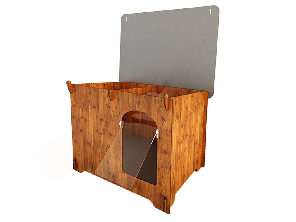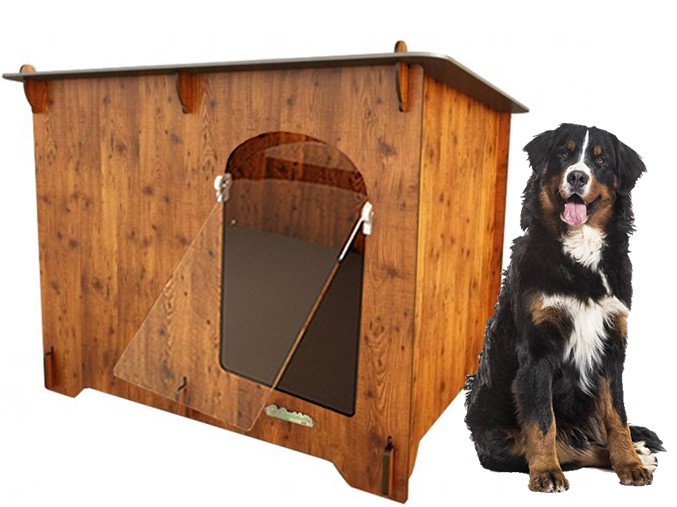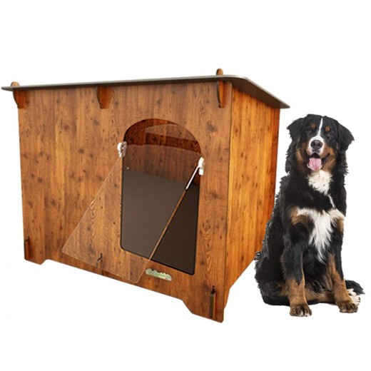 - Intrarea în cușca câinelui este protejată de o ușă Lexan impermeabilă , care va proteja animalul de companie de vânt și frig. Ușa este prinsă de intrare în două locuri, iar câinele poate trece confortabil prin ea, intrând și ieșind din casă.