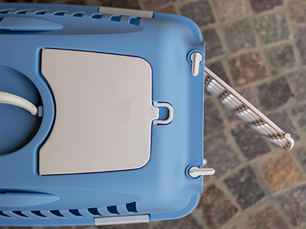 Pentru o transportare ușoară, există un mâner practic în partea superioară a cutiei. Pentru o transportare și mai ușoară, cutia are două bucle în partea superioară pentru atașarea curelelor (nu sunt incluse). Grila de pe ușă și ferestrele practice cu viziere de pe lateralele cutiei asigură o circulație corespunzătoare a aerului.