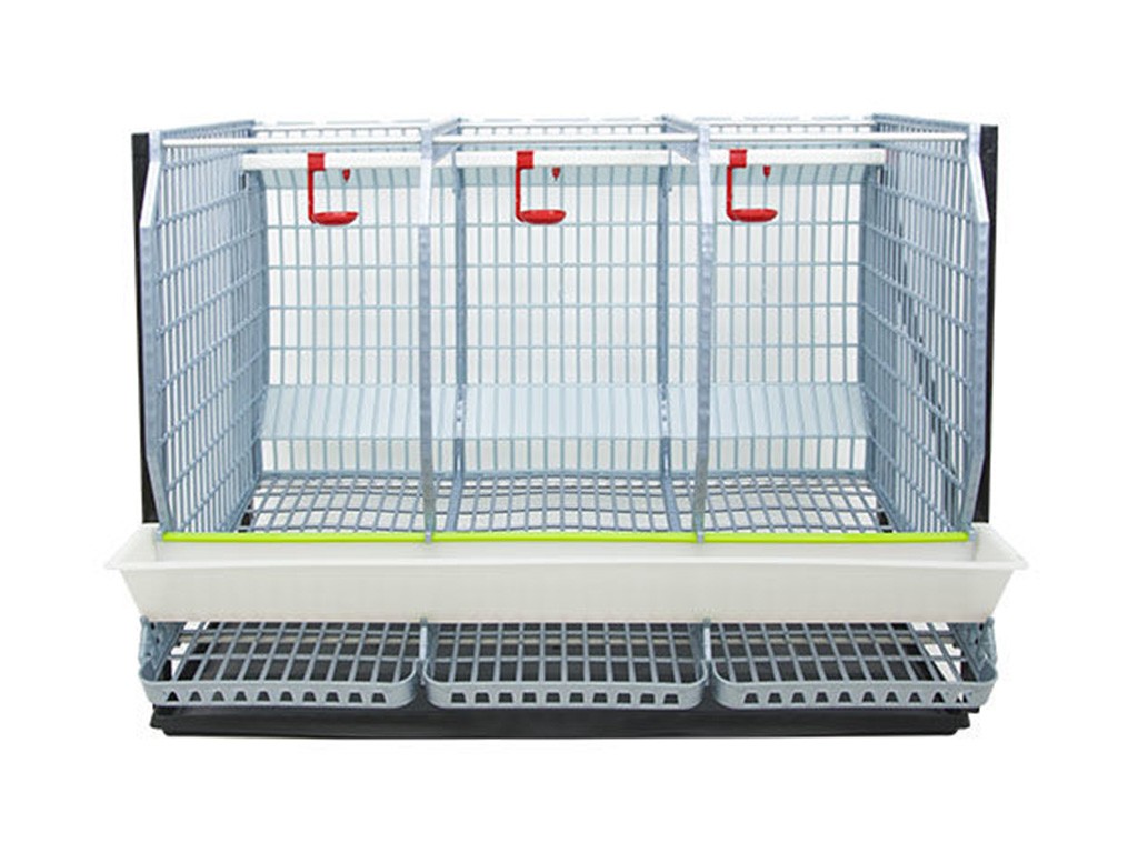 Cușcă pentru păsări de curte potrivită pentru 1 până la 3 găini , cu tehnologie patentată Comfortplast , dimensiuni 98x67x90 cm . Este o cușcă cu un singur nivel și 3 compartimente, echipată cu o tavă proprie pentru ouăle de găină, un hrănitor cu grătar pentru a preveni risipa de furaje, o adăpătoare cu alimentare cu apă dintr-un rezervor de 8 litri . Cuștile sunt fabricate din plastic cu rezistență ridicată la excrementele de găină și bacterii - întreținere foarte ușoară a cuștii și a excrementelor. Posibilitate de extindere cu niveluri suplimentare (max. 3 niveluri), manipulare ușoară folosind roți cu frâne.