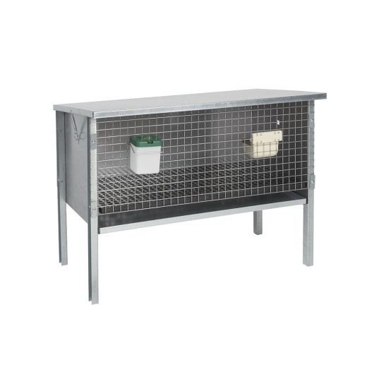 Cușcă galvanizată pentru iepuri, grătar de podea din plastic, litieră retractabilă, adăpător și hrănitor, dimensiuni 86x53x63cm.