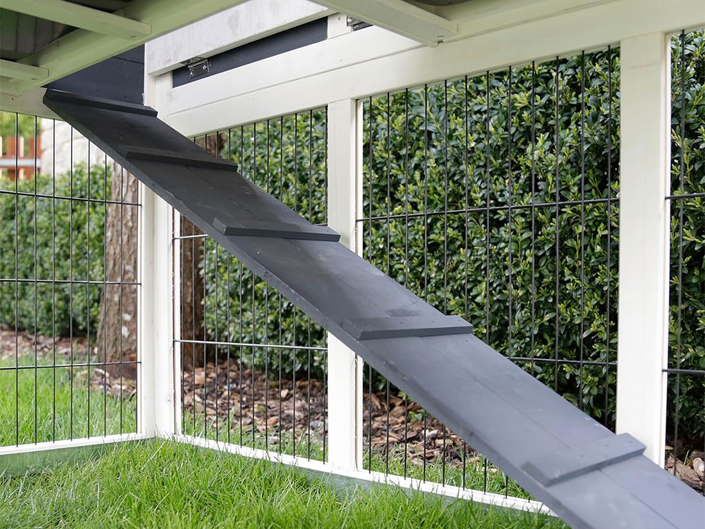 Cușca pentru iepuri este echipată cu patru uși separate . Pe cușcă, veți găsi o ușă cu zăbrele către compartimentul mai mare și o ușă solidă din lemn către compartimentul de odihnă. Există încă două uși cu zăbrele pe culoar . Cușca are grătare solide cu o suprafață rezistentă la mușcături și un cadru inferior metalic împotriva umezelii. Un iepure, un cobai sau o altă rozătoare va avea suficient spațiu și confort în cușcă. Animalul dvs. de companie se poate odihni în interiorul cuștii, care îi va oferi intimitate și umbră plăcute, sau își poate petrece timpul în culoarul exterior pe iarbă verde. Dacă doriți să separați animalele unele de altele, puteți închide ușa din podeaua cuștii care duce la rampa către culoar.
