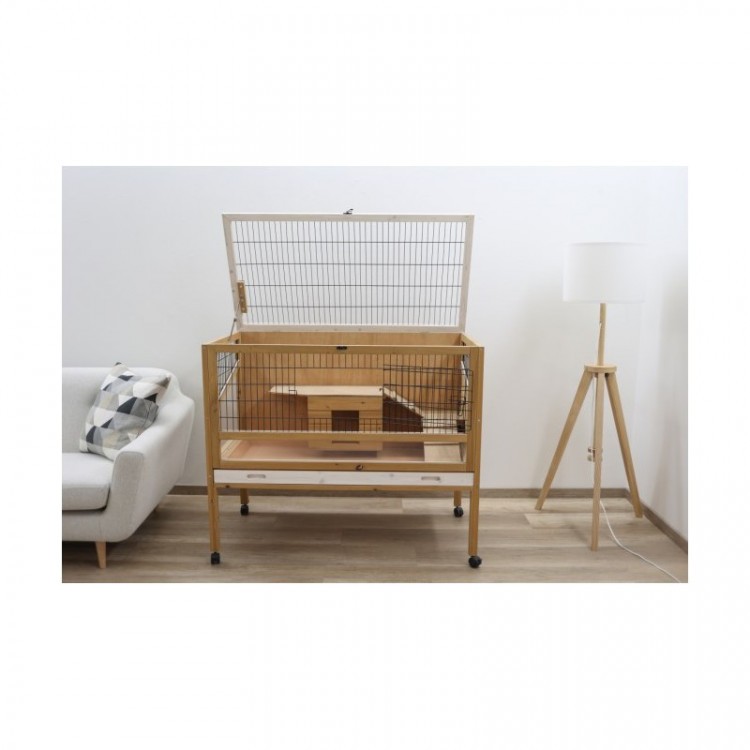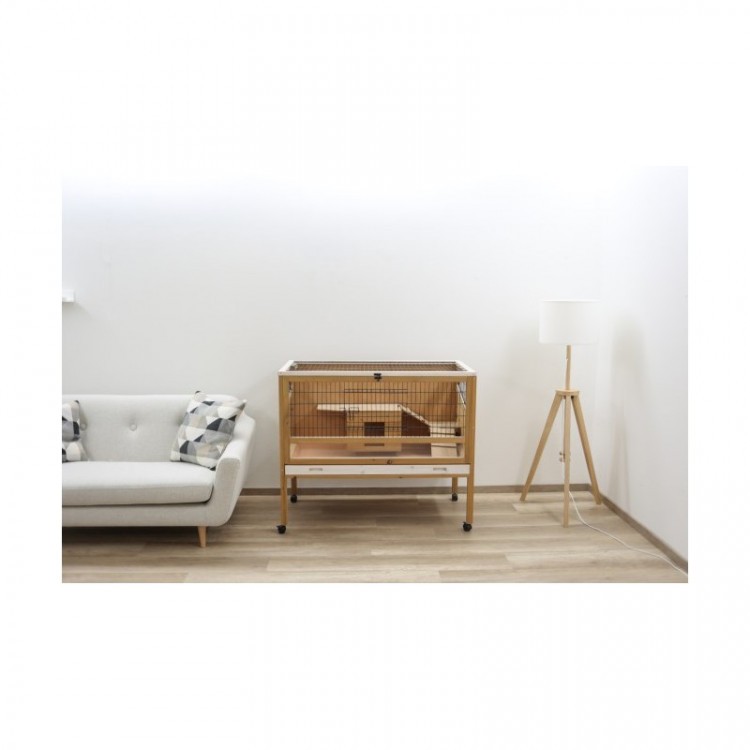 Cușcă elegantă pentru iepuri pitici, cobai și alte rozătoare , care iese în evidență mai ales în interioarele cu mobilier din lemn.